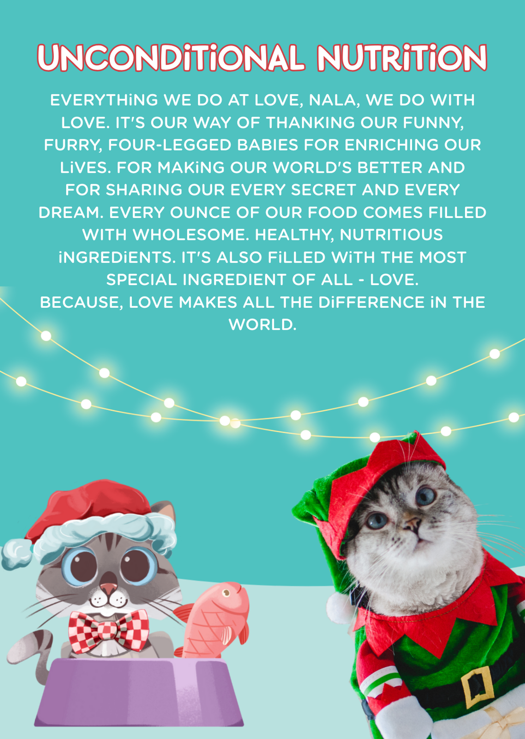 Unlike regular pet food, our premium cat food helps your cat enjoy its most vibrant health. Pets deserve the best; Love, Nala’s grain-free cat food gives them the specific taste and nutrition they crave. Shop our online cat food store!